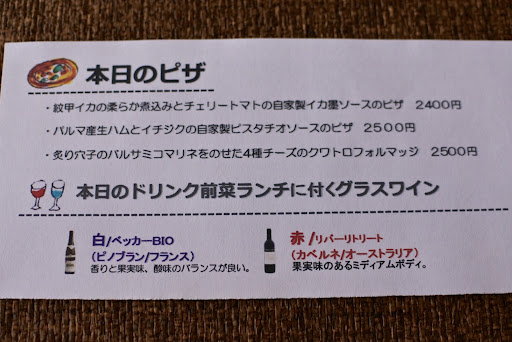 定番のメニューとは別に季節のピザがあり、我が家では大人二人、小学生一人、保育園年少一人で定番の4種のチーズのクワトロフォルマッジと季節のピザの組み合わせが多いです。ランチだとこれに前菜、ドリンクがついてきます。