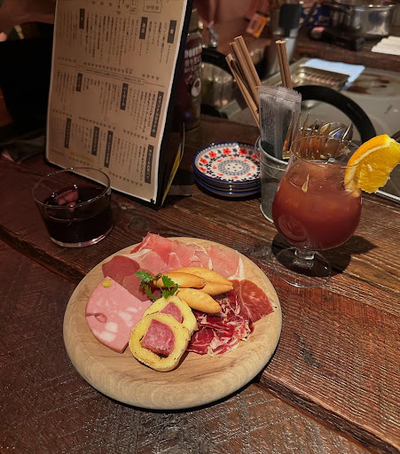 ハム盛り合わせも全部すっごく美味しくて塩分がお酒をそそる…チーズサラミが超タイプ!