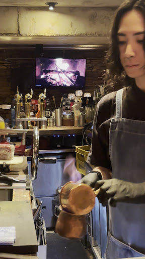 いつもよく通っているエリアの地下に、こんな素敵なお店があったなんて…! 入口を入ると、真ん中にカウンターが広がる少し変わった造りで、奥にはテーブル席もありましたが、今回はあえてカウンター席へ。 これが大正解で、店員さんが目の前で料理やドリンクを仕上げてくださる様子がライブ感たっぷりに楽しめました。