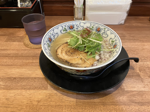 【マグロ節中華そば】 スープはあっさり系です。細麺で柔らかく食べやすいです。大葉特有の苦味もスープの相性と良かったです。 チャーシューも量だけでいうと、1枚なのですが、、分厚すぎます!しかも事前に焼かれているからか焼き目がついているんですよ!それもあって噛み答えはマジであります!後他店と何か違うんですよ、、何か脂身を感じなくて食べやすくなってるというか、、食ったら分かります!(語彙力よ、、)