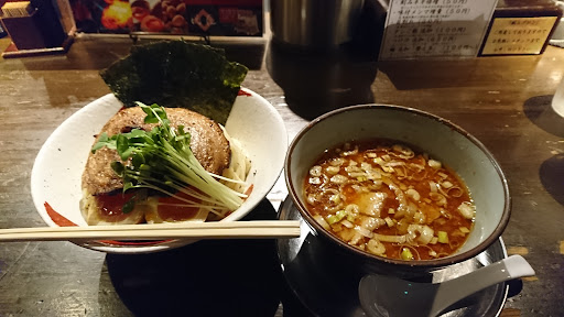 Read moreA place for quick eats as seats are limited, but queue clears quite quick, as the service was very organised: 1. Staff ask how many pax, and if u ok with counter seats 2. Decide on ur order based on menu in the queue, 3. Upon indication by staff, pay for ur order using the machine inside, and staff will tear part of ur meal coupon, 4. Go back to the queue outside. 5. Wait for staff to bring u in when seats are available. Shortly after seated, ur orders will be given to u. Noodles are springy and cold. The pork dipping sauce is served piping hot, but i find the sauce a tad too salty if I dipped the entire strands of noodles in, so I only dipped partially and the sauce coated noodles tasted just nice. Pork slice grilled just nice with slight charred taste, really delicious; onsen eggs simmered deliciously, dipping sauce has pork pieces too & lots of shallots. The set also comes with a mouthful of rice which will only be served after u finish ur noodles, rice is filled with a small amt of clear sauce, u supposed to pour in ur preferred amt of dipping sauce and mixed thoroughly - absolutely umami goodness - a great ending to the meal. Recommended...