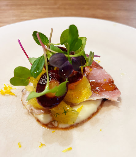 あぶった寒ブリ、パースニップのソースがおいしくて、そえられていたにんじんのマリネもおいしかったです。 猪の手作りサルシッチャ、パンから手作りのパン粉でつくった蟹のスップリの下に濃厚~なビスク、あたかい手作りパンも出してくださってビスクも残さずいただきました! ラザニア、フォアグラをつつんだ鶏肉、手作りからすみと手打ち麺の牡蛎のパスタ(私は牡蛎苦手なのでアワビで。たくさん頂いてたので少量にしてもらいました。おいしかった!アワビもだけど、特にからすみ) デザートにそえられているアイスもできたて。りんごチップも手作りとのことでした。 なにからなにまでおいしくておなかいっぱいになりました。