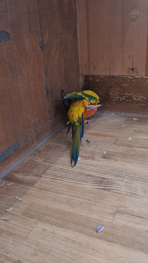 Having owned many animals on display and working with animal welfare laws in my home country, within 30seconds of walking into this cafe I saw enough animal welfare issues that made me walk stright out. A sun conour in a tiny plastic cage with nothing to perch on -A 40cm x 30cm cage is not big enough for a rabbit to live in, let alone with zero bedding. I could see the rabbit sitting in it's own pee A chicken should not be living in a small cage with a metal grated bottom. A meerkat is a social exotic animal that should be paired with other meerkats not a 20cm x 60cm cage, with no enrichment -Every animal I saw was exhibiting stress behaviours, weather the animals were raised like this or not, they are stressed.