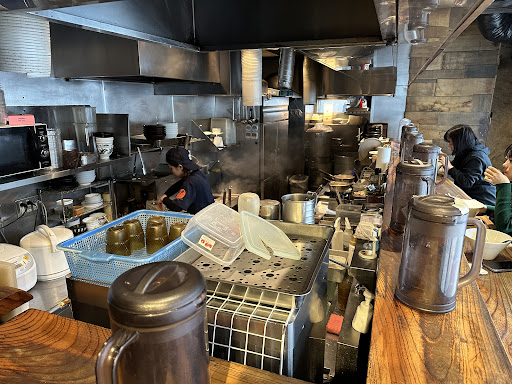Compact ramen shop with counter seating, known for its rich chicken broth with toppings.