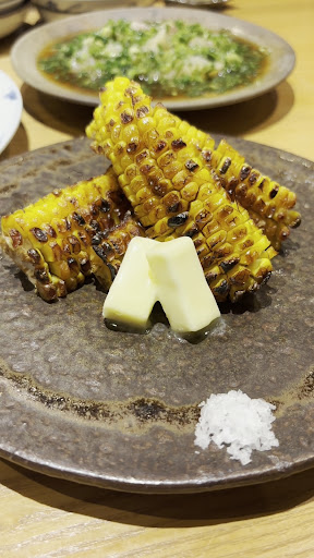 ◼︎ とうもろこしバター醤油炉端焼き 北海道産ゴールドラッシュを使用 とうもろこ自体が甘く醤油しっかりの香ばしい香り。バターを塗ると味がまろやぐ。