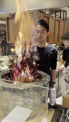 Read more店内は落ち着いたオシャレな空間で、ダイニングの周りにはたくさんのカウンター席があります💓 藁焼きも間近で見れて炎溢れるライブ感に圧巻🔥