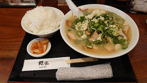 If you want to eat garlic ramen , this is the place to go. Of course, you can choose whether you want garlic or not. I used to like Satsumakko Ramen and used to eat it often, but the price became too expensive and I became a bit distant from it. Then I came across Garlic Ramen Ko-chan near Higashimikuni station and visited there often. The difference between Kochan and Sanpei is that Kochan is recommended if you like mild garlic ramen, and Sanpei is recommended if you want a spicy garlic ramen. The price seems to have been raised a bit from the other menu items, but it is much more reasonable than Satsumakko Ramen. I had lunch there and the price of 1,100 yen for chashu ramen with rice (large portion free of charge) and kimchi is quite reasonable. Topped with a boiled egg 100 yen. I had a large serving of rice and was quite satisfied. I will have a normal serving next time. Also, since other customers had made detailed customizations such as no green onion, no bean sprouts, more green onion, less garlic, more garlic, etc., I had the pleasure of finding the garlic ramen to my liking. Personally, I was a little disappointed that there was a lot of lean chashu pork and not as much tender chashu pork as at Sachikochan in Higashimikuni. I preferred Kochan's chashu. However, it was quite good as garlic ramen, so I would like to stop by when I come to Tsuruhashi. ⚠️One thing to note about is that it is not a very big restaurant, so if you are coming with more than one person, there is a high possibility that you will have to wait for a while. This is my personal opinion, but it seems a little rushed as there are many one-person diners and everyone eats and leaves (good turnover). The waitstaff does not pressure you to leave, so don't worry. Also, there is no parking attached to the restaurant, but there are plenty of coin-operated parking lots nearby. Thanks for...