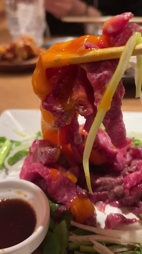 The yukhoe is incredibly fresh and melts in your mouth, while the minari (water dropwort) adds a refreshing crunch, creating the perfect combination. 🍽️ And let’s not forget the honey soy sauce chicken—crispy on the outside, coated in a sweet and savory glaze that makes it absolutely addictive! 😋💖