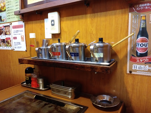 The restaurant was located in a long shopping strip, be careful not to miss it, look for the signs above. The interior is narrow, good for small groups and couples, and single foodies. The booths are equipped with a hot griddle, sauces and condiments, menus and instructions, and the occasional spicy magazine under the table. For non Japanese visitors, there is a English menu and the waiter/cook/server will guide you through the whole process.