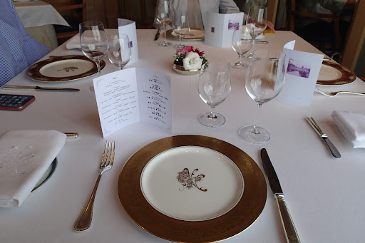 ランチタイムの訪問ですので、店は昼光が差し込む明るい雰囲気になっています。店に入るとヘッドウェイターが出迎えてくれて、席まで案内してくれ、椅子を引いてくれます。この際に、先に引いた椅子が上席なので、女性を誘導して座らせる訳なんですが、最近はポリコレの影響で、同時に椅子を引いてくれる店もあるような…。書き忘れてましたが、ドレスコードがあって、Tシャツとか短パンとかでの利用はNGです。ディナータイムには、男性はジャケットの着用を求められます。というか、昔はホテルのレストランって、どこでもドレスコードはありましたよね。それを面倒だと感じる向きもあると思うんですが、服装も含めて、誰と行くのか、何を食べるのかまでの全てが食事をすることの醍醐味でもあるので、そのうちの一つが失われていくのは、残念なことではあります。もちろん、カジュアルとフォーマル、その2つの方向性のいずれかのみを肯定するという意図はありません。