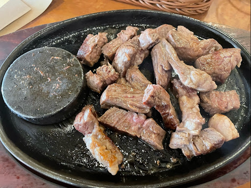 投稿者が注文したメニューはリブロインステーキだったがはっきり言って他店に入ればよかったと思っています。 ①ナイフは切れ味が悪いのか肉が切れない。 ②300gと値段の割に見た目が貧相。(脂身は胃もたれしそう。肉はしっかりしている、噛めば噛むほど旨味を味わえる。顎に自信がない方はやめておいた方が良い) ③肉にナイフを当て切るたびに木皿がまわる。面白いぐらいにクルクルまわる。