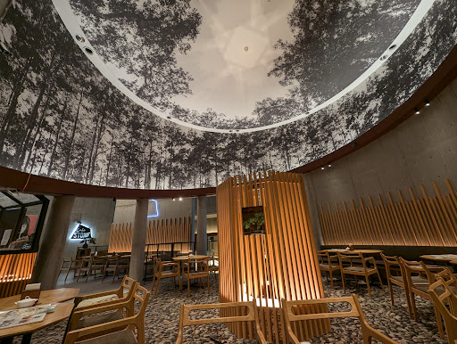 コンクリートや石材に囲まれた内装に木製の柱や盆栽が組み入れられ、和モダンで癒される雰囲気です。店内にはKYNEさんの貴重なアート作品も飾られているんですよ。