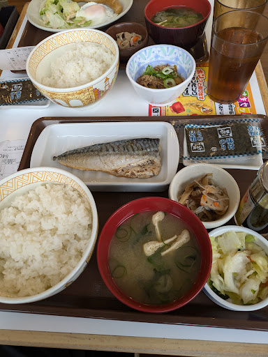 Read moreR.7.4.28 朝の朝食に訪問しました。 駐車場は割と広いのですがコインパーキング式で店舗飲食で40分の無料券が貰えます。 ですが朝の定食を注文して提供されての食事での40分は案外微妙ですね。私は時間超過で100円支払いました(笑) 今回すき家クーポンの割り引きで朝定食が1人50円引きで2人で100円割り引きだったのですが結局パーキング代で同じ価格になりました(笑) たまたま近くに用事があり訪問したのですが、ちょっとびっくりしました。隣の回転寿司と同じパーキングなんですが2時間無料となっていました。場所柄なのか?時間を気にしながらの食事は私には合わないのでリピートは無いと思います! 今回は私は焼き鯖の朝定食と奥さんはウィンナーエッグ牛小鉢の朝食を注文しました。 色々すき家には行きますが今回の店舗で頂いた鯖は1番美味しかった様に感じました(笑) 後ウィンナーエッグの方は目玉焼きの黄身が硬くてサラダの量が少なく感じました。 店内はとても広くてスタッフも朝から2人で何故か1人は時折椅子に座って居...