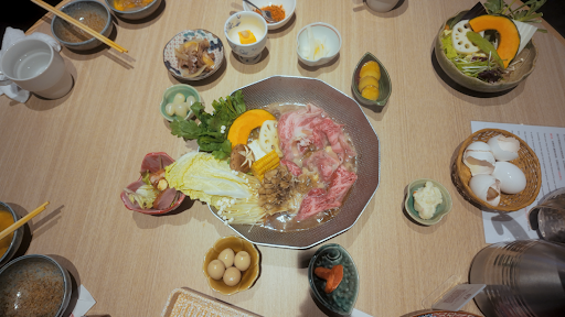 Read moreFound this place thru Google because wife was craving Sukiyaki and this restaurant had very great reviews!! Itâs located on the 5th Floor youâll see the signs for it on the bottom level. We didnât realized that this place was an All-You-Can-Eat Sukiyaki. Here is the run down of the menu, first you choose from 3 different options of meat (all of which are Japanese Black Wagyu). Starting with option 1, „5000/pp just meats and vegetables (assorted Vegetables, Chicken, Pork, and Japanese Black Wagyu). Option 2, „7000/pp gets meats, vegetables and seafoods (same as option 1 plus some Seafoods, Sushi, Wagyu Sushi, Steak and grilled squid. And Option 3, „13,000/pp all of option 2 plus premium Kobe option plus sashimi. Unlimited drinks are also available for „500/pp for soft drinks and „1500/pp for alcohol. Deserts are also included. Staff here are very friendly, we had some language barrier but we worked thru it. Our server was very friendly, patient and helpful. After you select which option your table wants (since itâs an AYCE and itâs a communal pot, the whole table has to get the same option, same with drinks), then select the type between Sukiyaki or Shabu Shabu. My wife wanted the Sukiyaki so that Walmart we did, the broth was very tasty and delicious!! The first initial pot the server did for us, and then all we did was add more broth, meats and vegs throughout the dinner. You can also order seasonings such as shichimi, yuzu, and grated daikon for the dip which we didnât realized until the end. Itâs under âseasonersâ. Overall, this meal was a success!! Both wife and daughter loved it. The Wagyu was very tender and flavorful!! Just make sure to be very hungry when...