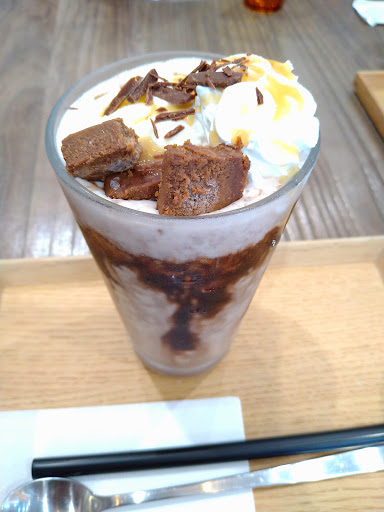 Read moreおともだちとランチのあとに、カフェへ。 お腹いっぱいで来なければ、お茶とおはぎセットにしたかったですが、暑かったので、ここはチョコバナナなお洒落ジュースをお願いしました。いちごやほうじ茶(ブラックティーと言うらしい)も次回は食べたい。 チョコバナナ、とても美味しかったです。程良い甘さがいろんな風にミックスしてて、お子さまも大人も一緒に楽しめる味です。見た目も写真映えします。オススメです。 「和」カフェな雰囲気もあり、おはぎやお茶もあり、パフェやケーキもあり、クッキーもあり、お食事もあり、かき氷もありでここは次も是非いろいろ食べたいのでまたお伺いします。 お店はシンプルで素敵。チェアも可愛らしくてとてもオシャレです。採光もよくて、ほどよく外も感じれるので、お昼に訪れましたが、落ち着いた店内に、可愛い店員さん、素敵な店内がとても気に入りました。 トイレも奥にありました。お店のグッズや茶器の販売も片隅あり、お持ち帰り用にパウンドケーキやクッキー、おはぎなどがありました。パウンドケーキもクッキーも息子がおいしくいただきました。近日、かき氷とおはぎを...