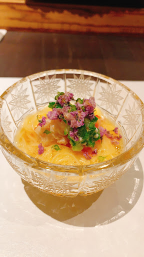 2024.8訪問時 いただいた料理 トロタク巻(大間) 鱧(徳島)しゃぶ松茸 鯛(加太) 鰹(気仙沼)たたき漬け浅葱玉葱(淡路) いくらの茶碗蒸し 海うなぎ(天草) あん肝(与市)奈良漬