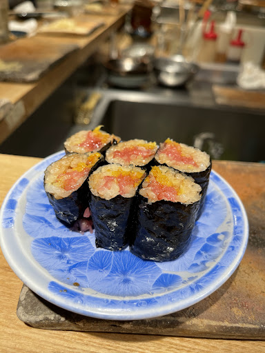Read moreカジュアルなお鮨屋さん。 安くて美味しいお鮨を食べられると、色んな方にお勧め頂き、気になっていたのでディナーに訪問。 キッチンを囲んだコの字型のカウンター+奥に座敷の店内は、ざっくり30席くらい。 オシャレな造りの店内だが、席の間隔が狭く常に満席の為、大衆居酒屋のような雰囲気。 この日は初めての訪問の為、ツマミからスタートし最後に握りと、食べたい物をざっくばらんにオーダー。 結論から言うと、個人的にはかなり残念な内容でガッカリだった。 コロナによる時短の影響だろうが、色んな方がお勧めする理由が分からないほど酷く感じた。 一番酷く感じた点はサービス。 注文無視、嫌な顔は当たり前で、頼んだ物が出てこないが続出。 違う日本酒を頼んだのに、同じ徳利に日本酒を注ごうとするから、変更を依頼するも嫌な顔。 寿司下駄に乗せた後の、頼んでない握りを、平気な顔して他のお客さんに出しなおすなど、疑いたくなる点が多々。 友人とワイワイという感じの利用なら有りだが、接待やデートでは絶対使いたくないなと感じた。 肝心の味に関しては可もなく不可もなく、値段相応といったイメージ。 この値段で、握りたてを一巻ずつ提供してくれる点は評価できるが、握りたてを食べられる回転寿司もあるので、個人的にはなんともといった印象。 会計後の亭主との立ち話で、コロナの影響でスタッフを削っているという話を聞いた。 客数に対しての店員が足りず、最初から最後まで戦争のような店内だった。 確かにコロナの影響で人件費を削りたい気持ちは分かる。家賃も高いだろう。 ただ、全員予約客だったので、コントロールのしようはあったんじゃないかな?と思ってしまった。 そんなこんなで、なんかモヤモヤしながらお店を後にしました笑! 恐らくすごくタイミングが悪い日にお伺いしたんだろう笑! コロナと時短が落ち着いたら、皆さんが良いという理由を確か...