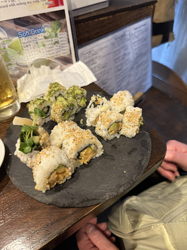 The owner and chef speaks good English as worked in California as a sushi chef 25 years ago. Since itās just him in a tiny kitchen area, he prefers that you order the 3 sushi set and let him pick what sushi he makes for you, but you can also order whatever you want if you like - the menu is extensive. Since we were a group of four (all vegetarians) this was absolutely fine by us as itās a very labour intensive dish to make. We had the green tea, natto and spicy veg rolls which were all great.