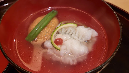 Relaxing space with a single board counter seat & a seasonal menu of kaiseki cuisine.