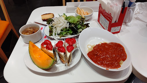 Read more約10年ぶりに行きました。 予約をして平日の19時頃に行ったのですが、かなり空いていました。自分が学生だった頃は曜日問わず階段まで行列ができていたような? 味は値段にしてはじゅうぶん美味しいと思います。プリンロールケーキが外側のカラメルがザクザクしていて特に好きです。 皆さんも書いていますがカレーが美味しいです。 ひとつ気になったのが、店内は空いているのにお客さんを入れる座席の配置がかなり偏っていて、一部のゾーンはガラガラなのに一部は客が密集しているという感じになっていました。 私も長年飲食店で働いていたので、平日のスタッフが少ない時間帯は料理を一気に運びたいのである程度席を固めてお客さんたちを案内をしていました。でもここはバイキングなのでそれは関係なさそう…。 コースで座席ゾーンをある程度分けているわけでもなさそう…。 あとは、しめ作業の関係とかもあるかとは思うのですが、 せっかく周りを気にせず楽しく友人とお話をしたいのに、隣のJKたちに聞かれてしまうリスクを背負いながら談笑するのは、不満とまではいかないですけどせっかくこれだけ空いているのに何故だろう? と思ってしまいました。 自分たちの列はテーブルが横並びで10席くらい並んでいるにもかかわらず(店内入って中央辺りの片方が白い壁ソファになっている大きな柱が隣にそびえる4人席)私たちと隣のJKの2組だけだったので、せめて席を1、2個飛ばしでもいいから空けるべきでは?と思いました。 せっかく予約までしたのに入口に近い?苺とか果物がたくさん並んでる近くの肌寒い座席になったのもハズレ席だねーって言っていたのに、そのあとすぐ真隣に客が案内されてさらに残念に思いました。 私たち以外の座席ゾーンも、基本的に一ヶ所に集められていたのでそういうやり方なんだろうなと思います。 他に不満点はないだけに、店都合が垣間見える瞬間ってち...