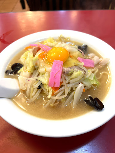 Read moreハイハイタウンの地下2階にある長崎ちゃんぽんが人気で、1981年創業の中華料理店です。 平日の水曜20時過ぎに再訪。先客4名、後客7名です。帰る頃には外待ち1人になっていました。 店内は、4人掛けテーブルが7卓で28席程ありますが、1人客でも1卓使うので、すぐ席が埋まってしまいます。 定番メニューのちゃん焼きセット(ちゃんぽん+焼き飯小)1130円+焼餃子330円を注文。 長崎ちゃんぽんは、中太ストレート麺で、旨味たっぷりの豚骨鶏ガラと海鮮出汁のスープ。具材は、もやし、キャベツ、豚肉、木耳、かまぼこ、人参、海老、イカと具沢山で、ちゃんぽんには珍しい黄身がのっています。黄身を割って、麺と具材と一緒に食べると至福の美味しさです。 焼き飯は昔ながらのチャーハンといった感じで、味の濃さは優しめです。具材は、玉子、青ネギ、グリーンピース、人参、紅生姜が添えられていて、抜群のパラパラ具合にしっとりとしていて大変美味。 焼餃子は外カリっと中しっとりで肉汁が閉じ込められ、破ると肉汁が溢れ出します。味噌タレとの相性抜群で、必ず頼んだ方がいい一品です。 常に出入りのある人気店で、南海飯店と並...