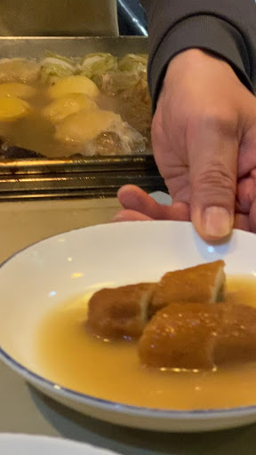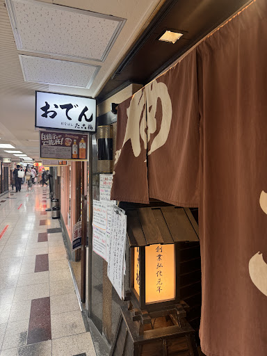 My wife found this on one of her travel apps in Mandarin. A little skeptical at first because since they actually market for the Chinese market. They brand themselves as one of the oldest Oden shops around. The oden bar itself was situated inside a maze like underground food court. Sort of dated with both new and old eateries. Kind of off the beaten path from the skyscrapers of Osaka station. Menu in multiple languages so It means they know the game. The set up was bar style with an Oden chef in front of you. We thought it was sort of pricey especially since it was mandatory to order a drink. I’m no oden expert but I can’t really tell the difference between good or really good. ( family mart oden taste good to me but what do I know?) I guess the broth is what does it? I mean it was pretty light but sweet. We aren’t big drinkers so we more so went for the experience. My wife likes to eat light and she got it here. The price really sealed the deal though. We thought it could have offered more value but a lot of locals there that seemed to enjoy it so to...