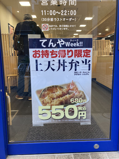 1/15〜21の期間限定で、てんやWeek開催中とネットで発見。 上天丼弁当が¥550でお得!ってことで、久しぶりに来店。