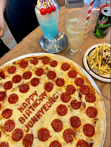 This was a very relaxed smaller pizza parlor. Luckily you can order by the slice as a full pizza is reminiscent of the better days of portions. A full pizza would most probably serve about 3 very hungry Aussies, they are BIG. They are very friendly with a couple of the staff being able to understand English which helped. One young man called Trey was very friendly too. They also serve alcohol including some spirits, cocktails and beer. Non alcoholic drinks also include Spiders, yum yum. And they have dessert pizzas which are a must. Recommend this to anyone who wants a nice fresh cooked pizza while you wait. And you aren't rushed...