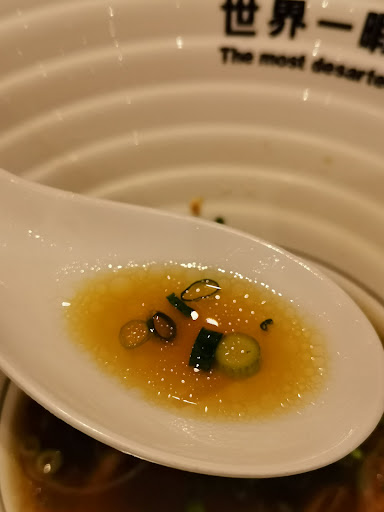 Step inside, and you’re met not just by the aroma of simmering broth, but by music—often Mr. Children playing softly in the background, adding a poetic rhythm to the air. The interior is clean, modern, and calm, with warm lighting that wraps you like a memory.