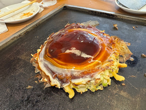 Read moreA couple of days ago, we went to the Osaka Aquarium. Wow, what a wonderful few hours we spent seeing recreations of many of the world's oceans. Afterward, we went to find one of my favorite Japanese dishes, Okonomiyaki. We lucked out and found one not far away. A family joint that was friendly and welcoming. We split the grill two ways and got 2 different Okonomiyakis and two different Yakisoba noodles. Our chef did all the cooking, and it was nice to warm up with the hot plate and good conversation. It had been years since I had either dish, and it was delicious to eat these Japanese comfort foods. Great...