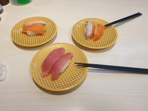 Read moreIts a very self-serve conveyer belt sushi place. You use an automated kiosk to waitlist/get assigned a seat, and you order everything off of tablets. Even when going to pay there is an automated kiosk. This is very convenient for me, but can be seen as impersonal for some. Other chain kaitensushi places are like this so this isn't any different -- I would say the food though is definitely a step up from Sushiro or Kura. I did like the fact that all counters were separated...