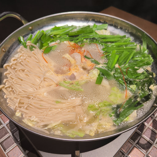 ⚫︎濃厚出汁の赤海老しゃぶしゃぶ 生で食べられる赤海老を、味噌ベースの汁でしゃぶしゃぶして食べるぜいたくな鍋。火の通し加減は自分の好みで決めれますが、レア気味が個人的には好きでした☺️