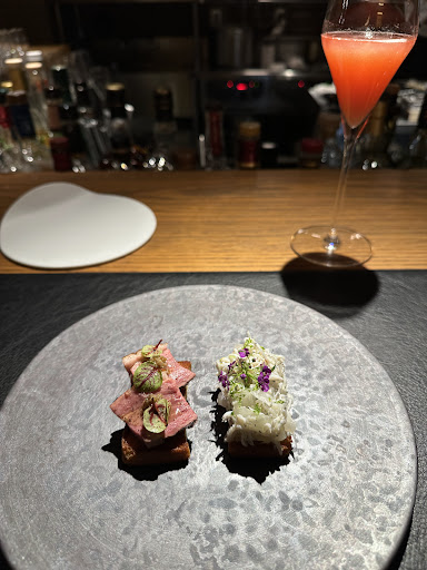 I was so surprised that this fine dining is ran by only two persons, a chef and a server who also picks all the pairing. For all courses you get to choose from wine, whiskey, or non-alcoholic cocktail. This is the best paring I ever tried. Each drink is inspired by an element from the dish. Also everything is homemade, from syrup to ice cream.