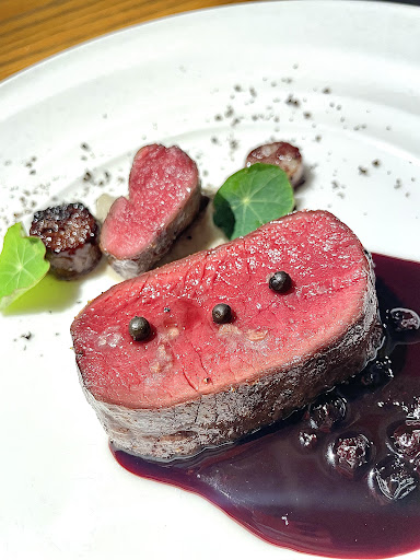 ・但馬本州鹿 新牛蒡生胡椒 この日のメインは鹿🦌 なんと、ロースとヒレの2種類を提供してくださいます。あまり食べたことがなくて、どんな味かドキドキしましたが、とても美味しかったです! ローストしたごぼうと生胡椒がアクセントになっていました。 食べ比べの結果、個人的にはヒレ肉の柔らかさが特に好きでした。