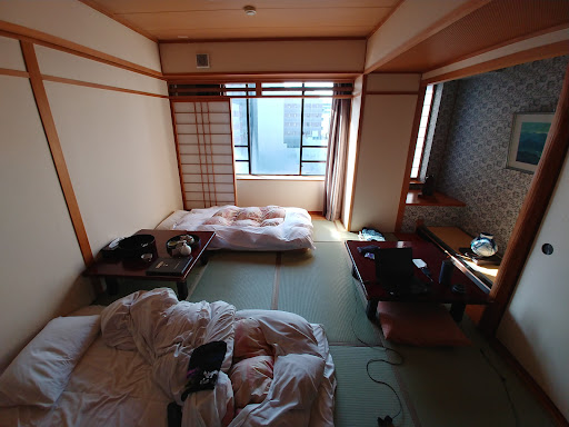 Read morePOSITIVES-|--Authentic Japanese Inn (ryokan) experience! Most of their rooms are Japanese style (no beds - sleep on thick pads on floor), although they have some Western style rooms (with conventional beds). This isn’t five-star hotel (if you want one, book the new Four Seasons at 5-7X the cost). It’s a super cool “hotel” experience, especially for a few days stay. |--Incredible location (one of its biggest strengths) - it’s at the beginning of Doutonbori Street (the main tourist pedestrian street in Osaka). It’s also on the canal (which runs aside the above street). |--The Inn had a nice Onsen (hot springs/mineral water) in the basement. There are separate male and female facilities. It opens as early as 6A and closes midnight’ish. Not only did sitting in hot mineral water feel good at the end of the day, but it also helped my significant muscle aches from a day of constant walking. Besides, going to an authentic Japanese Onsen was downright cool!|--Front Desk staff knows English - some a little limited, but others quite well. They are also very friendly. |--Has unisex kimonos in the room for your use. Makes for a cute pic. |--There was daily housekeeping (in the US this is becoming a rarity). |--They offer both a Japanese breakfast and a Western version. We had both. ||NEGATIVES-|--There was only one electric plug in the main (bed)room. |--Wi-Fi on the 9th floor was essentially nonexistent. I occasionally saw the 8th floor Wi-Fi signal show up on the 9th floor. I had a personal Ninja Wi-Fi Hotspot so it wasn’t a big deal for me, but if I didn’t, it would be a big problem. |--No chair in the room (probably in the Western-type rooms).||Hint: ask for room facing the canal / Doutonbori Street||I would stay...