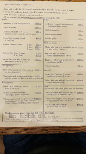 This was one of the best meals that I enjoyed in Japan (as compared to 1-3 Michelin starred restaurants). I had an a la carte dinner and the food was spectacular and perfect. I had a course of Japanese cheeses, an onion and turtle soup, a seared venison loin and selections from the pastry counter. I can only rave about each; based on this alone, I think that 2 Michelin stars would be appropriate. I let the staff choose my wine for the courses and was pleased with each. The service and atmosphere were more casual than usual based on the caliber of the food but not in an unpleasant way. There were only 3 staff members so courses progressed at a more relaxed pace than at many restaurants (a three course +dessert meal lasted about 2 hours) but it wasn't unenjoyable and, otherwise, service and knowledge were top-notch. I sat at the counter so was able to observe and converse with the chef about preparations and ingredients. I found that the intimacy more than compensated for formality or strict professionalism - it was as much like eating with a (culinarily gifted) friend as dining in a restaurant. I would recommend Yohaku to anyone - gastronomes, couples,...
