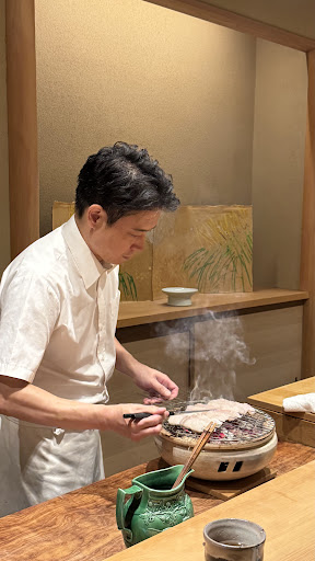 Read more半年前から予約してやっと訪れました。それでも夜8時15分からの入店。一斉スタート形式でカウンターのみでした。遅れずにこれて良かったです。 この時点でかなり期待しています。 味の好き嫌いはありますので、個人的な意見ですが、美味しい~と思わず声の出る料理は残念ながらありませんでした。一緒にいった妻も同じ感想でした。出汁にこくがなく、あまり美味しいとは思いませんでした。なんというか、無難な料理というか、造りもそこそこ、8寸もそこそこ、全部そこそこ、という感じでした。ここより美味しくて安い店は沢山あるなーと思いました。あくまでも個人的な意見です。隣で食べられた方は美味しいと次の予約を取っていましたので、人の味覚はそれぞれだなーと改めて思いました。ただ美的センス、味のセンスはないと思います。努力でこられた方かと。 何故こんなに人気なのか................ 一番残念だったのは会計の時に今日は食材の関係で16000円になりますとのこと、いやいやプロなら決められた金額でコースしてくださいよ。 15000円のコース食べにいって、今日は食材の関係で16000円になりますなんてレストラン聞いたことないし、せめて食べる前に言うべきだと思います。全ては店都合で客の...