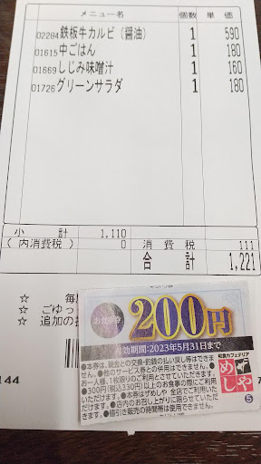 Read more晩ごはんに良く利用します。夕食時でも今のところ基本的に満席になっていることはなく、1人でもテーブル席でゆったりできるので気分良く食事ができます。 出来合いの料理は店員さんがレンジで温め直してくれますし、期間限定やおすすめ等のメニューは注文してから作ってテーブルまで運んでくれます。 鉄板焼系のメニューはどれも油がギトギトなのが個人的にマイナス点です。油でベタベタの野菜炒めはしんどかったです。 200円引きのクーポンが8枚、新聞の折り込み広告で入るのでこれを利用しない手はないです。クーポン8回分で1600円なので1食分以上はタダになる計算でお得です。 利用できる決済サービスが限られている...