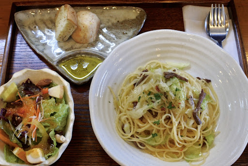 最近はトマトソースパスタばかり食べてるのでこの日はオイルパスタにしました^ ^ ちなみにパンのお代わりは可です。