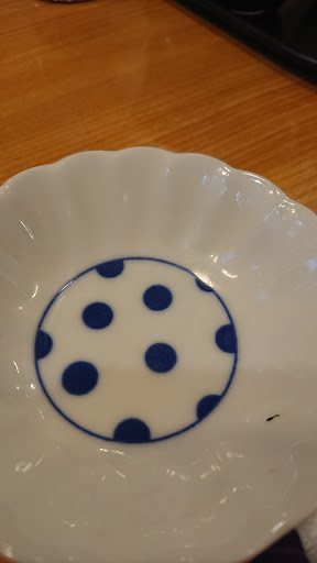 既にお箸と皿が設置されていた。 醤油皿汚れていたので紙のお手拭きで拭くと紙のお手拭きが醤油色に汚れた。
