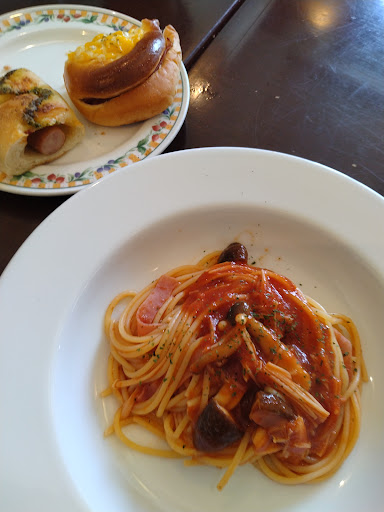 Read moreランチのスパゲッティはソースが残念😅パンは自動コンベアーみたいな物で自分で食べたい分食べ放題。ドリンクも❗パン🍞そんなに食べれません😅ランチはそんなに利用しないけどパン🍞は良く買いに行きます❗種類と値段安くて美味しいです!ミニシュークリーム&ミニエクレア安くてウマウマ😆食べるべし❗ハード系のパン🍞は好きな感じで💕最近ケーキ🍰食べに。ケーキセットはドリンクバーも付けれてお得です。葡萄🍹マンゴー🍹あっさりで飲みやすい💕何回も行ってルのに喫煙席有るんですね✨喫煙者として嬉しい😆場所は違うけど有りがたい。ゆっくり出来て最近は🍰ケーキセット食べに良く行きます🏃➰パンはお手頃...