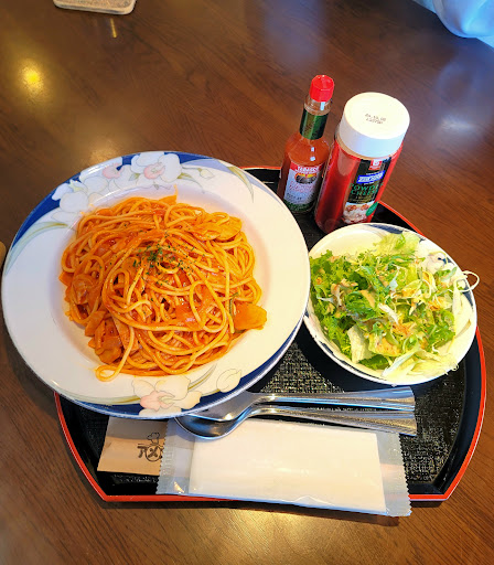 お友達とのランチで利用させていただきました 二人とも初めてのお店 入口を見つけるのに戸惑いました 事前にネットで下調べはしていたのですが、店内は昭和な感じで 働いているスタッフさんも昭和を感じる方々でした お水の有無を度々見に来てくれたりしましたし お料理はランチ時間はランチメニュー4品だけでした 確認しませんでしたが メニュー表の裏側に飲み物とデザートはあったのでそちらは多種ありました 私達はナポリタンを注文しました 提供時間は早くなく遅くなかったし 味は少し濃い目で量も多めでしたので満足でした オープン時間ジャストで入りましたが、すでに女性 世間的には年配の が一人食事されていたのでその辺りも昭和だねーと そして私達が席に着いて間もなく 年齢高めのお客様が次々と入ってらして たちまち満席になりました 👏👏 ランチの値段が 食事とミニサラダと飲み物付きで1000円前後 ボリュームありましたし は魅力ありますからね 場所がコミュニティセンターの陰の方になっているのも人目を気にせず寛げる要因 集客に繋がっているのかと思って帰ってきました 7月から値段が変わると表示ありました 初めて入店が値上がり前で良かったなあ 他の料理も食べてみたいので また...