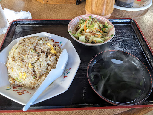 Read more初訪店、店内は押井守作品に出てきそうな年期の入った昭和の中華料理屋と言わんばかりのたたずまいで懐かしい感じ。 「チャーハン」を注文、十数分で到着。好ましい香ばしさがただよう、卵とネギ、チャーシューが入ったシンプルなタイプ。 旨味がある濃い目の味つけ、しっとりめでパラパラしている。 美味しいが量が多いためか2/3程食べると飽きてきたので、付け合わせのスープを飲む。 ワカメと刻んだシソが浮かんでいて、これがスッキリした香りと味で、またチャーハンが食べたくなるという代物。この組み合わせは素晴らしい。