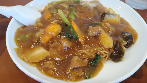 2021/08/07来店 海鮮麺を注文。 エビ・イカ・貝柱・ホッキ貝の海鮮 具材は、袋茸・クワイ・椎茸・小松菜?・白菜でした。 他の店に入っていないような具材が入っているので楽しいですね。清掃・接客は問題有りません。外は灼熱の地獄でしたが、中は冷房ががっちり入っていて涼しく食事できたのが高ポイント(どこぞのラーメン屋とは違いますね) 一帯は激戦区(魚べえ・スターバックス・イオン・ビックボーイ)なので客量は意外と少なめで休日でもそんなに待つことは無いと...