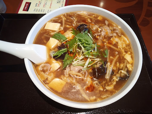 Read more家族4人で来店 全体のメニューは少なめ、綺麗めの小洒落た店。 酸辣麺を入口前の板で勧めてたので↓ 酸辣麺 海鮮麺 を注文。 海鮮麺は塩ベースに細麺 イカ 貝柱 エビなどが入っていてゴマ油が良い感じの味でした。 自分は酸辣麺を注文。醤油ベースの細麺、きくらげ、筍、水菜(?)、絹豆腐(冷凍品では無かったです)卵トロミがあり結構酸味が強く感じました。 ただ、醤油、胡椒(酸辣麺はブラックペッパー 卓上はホワイトペッパーで味調整が出来ない)が弱く、酸味が強いのでバランスが多少悪い感じでした。 海鮮麺★4 酸辣麺★2 値段は850〜890円位で、値段は全体的に高めですが、他店にあまり無い商品が多いので試す価値はあると思います!