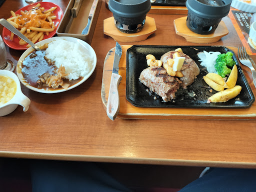 Read moreハンバーグと言ったら『ビッグボーイ』。 ということで、二人で夕食をってことで初来店でした。 お店の雰囲気は、American!ミュージックも、えーね〜☆ ただ、店員さんの人数が少ないのか?オーダーのためのボタン押しても、なかなか、店員さんが来ず。 お会計待ちのお客様も列を作ってましたねー。 若向きのお店なのかな〜? 私達高齢者には、手捏ねバンバーグ、食感が少し硬めだったなー。手元に添えられた小型の鉄板で、ジュ〜って焼くことで、加熱と楽しさはましたけど。 野菜ジュースのお味は、イマイチでした。 次に来店の際は、手捏ねの俵型のハンバーグではない品を注文してみようかな〜と思ってます。 目の前で、店員さんが、俵型のハンバーグを半分に切り分けてくれるパホーマンスは、ワクワクしました〜!はね返りの油を防ぐシートにも覗き込まないで!って書いてあったけど、ついつい覗き込...