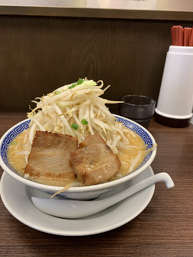 Read more初めて入店。看板の写真見て美味そうな予感で入店!券売機の1番上多分店一押しメニューから醤油豪麺中豚5枚入り注文ニンニクの量聞かれ少な目でお願いしました!大した待ちも無く運ばれた器!モヤシ山盛り!少なくともスーパーのモヤシ1袋にキャベツ少々をシャッキシャッキに炒め取り囲むチャーシュー!5枚最低1cmはあります!内1枚は3cm程ありました!酷のある醤油ダレ!背脂も浮いてますが脂こさはほとんど感じませ。中太のカンスイ多目の黄色い麺!もっちりシコシコ!なんか麺の太さ細麺中太太麺から選べる様です!チャーシューはスープによく浸す事で脂はトロ~ン赤みはホロホロと美味しく頂けます! 990円でかなり満腹!ご馳走様でした!また寄ります!ふたたび!今回は醤油つけ麺!大盛に味玉チャーシュートッピングです!太麺は香りもよく!ツルツルモチモチ!出来る事なら太平麺なんかあると嬉しいかな!ニンニク少な目お願いましたので醤油の香りも良く美味しく頂けます。チャーシューは厚めが5枚ホロホロ柔らかタイプ!普通のラーメンに比べると野菜は少な目ですね。全体的にまとまった感じでgoodです。割スープくれるとまだまだgoodですね。ご馳走様でした。久しぶりです!今日は味噌豪麺大とします!10分程度で着丼です!デカイですね!シャキシャキモヤシホロホロチャーシューが二枚とシンプル。あっさり目の味付けくどさは無く飽きずに最後までいけます!ニンニクも今回は減らさず頂きましたがあんまりキツさはありませんでしたね!美味しく頂き...