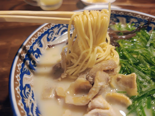 私は、長浜ばかネギラーメン(白)バリカタをオーダーしましたが、この「ばかネギ」は多分量が「ばか」なのでしょうが、ネギは量が多かったとは思いますが、「ばか」が付くほどではありません。 麺の硬さも6段階中の4番目の硬さのバリカタですが、九州で食べたトンコツラーメンよりは柔らかかったです。(その時は特に硬さは指定していません) スープは、トンコツを感じられますが、マイルドです。 良かった点は、別容器で高菜と紅しょうがが提供されたのはGoodです。 スープは熱々ではなかったですが、完まくできる位の塩分です。 待ちが長かったので、味よりも怒りの方が脳を占領してしまい、味わうことを専一出来ませんでした。 丸ごと搾りサワーレモン490円は皮ごとミキサーにかけているだけあって美味しかったです。 鉄板餃子(にんにく)450円は、羽のパリパリと...
