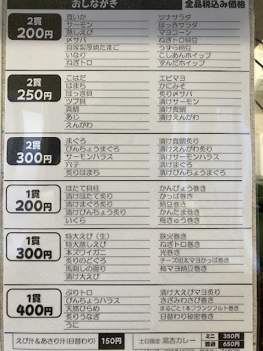 ただ以前レビューした時一皿税込150円〜だったお値段がほぼ一律値上げして基本が一皿200円以上となってしまったようなので一食当たりの価格帯としては完全に一段上のお店になってしまいましたね。 せめて150円+税あたりまでなら許容範囲な方も多かったと思うのですがこの価格帯だとすし勘さんや平六寿司の高価格帯だけのお店のような価格帯になってしまうのでちょっと庶民が気軽に寄って味わえるお寿司屋さん感は失われてしまうかなぁ。