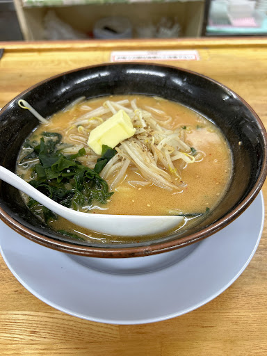 スープはあっさりしており具もわかめともやし真ん中にバターがありシンプルです。 麺は手もみと細麺?が選択(着席後聞かれました)できます。手もみにしましたがもちもちしてて食べごたえがあります。 バターもあっさりしたスープの味変になっておりいきなりこってりになり飽きない味わいです。 チャーシューはトッピングしないと無いので買わなかったことを少し後悔しました😔 チャーハンも普通に美味しいです。紅しょうががめちゃくちゃ付属してきます。ありがたい😊